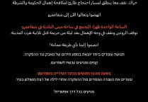 احتجاج متواصل يبدأ اليوم الأربعاء الساعة 13:00 في مدينة شفاعمرو، وذلك في أعقاب جريمة القتل الثلاثية التي وقعت صباح اليوم.