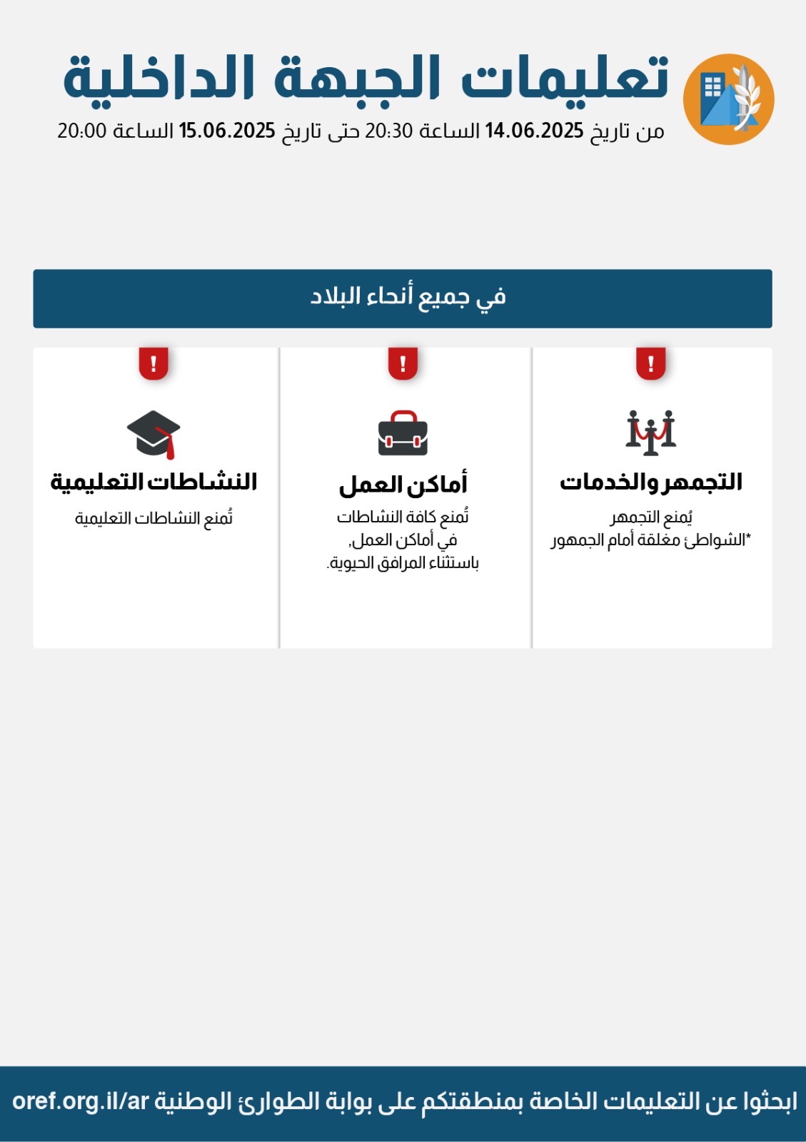 *تبقى التعليمات قيادة الجبهة الداخلية على ما هي عليه وبدون تغيير.*