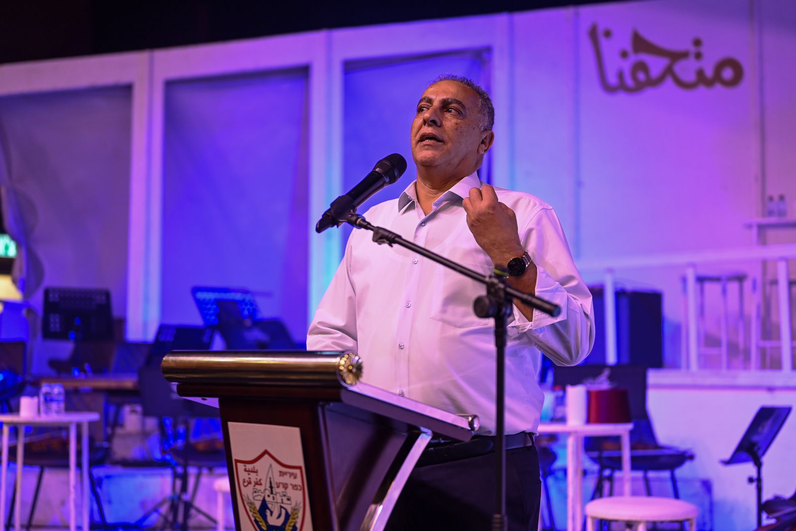 ثم اعتلى المسرح المحامي فراس احمد بدحي، رئيس بلدية كفرقرع، الذي عبّر عن فخره واعتزازه بهذا الحدث الثقافي النوعي والحضور العظيم من كل اقطار المجتمع العربي، مشيدًا بالجهود الجبارة التي بذلها القصر الثقافي وقسم الثقافة والتربية اللامنهجية لإخراج هذا المهرحان الى النور بأرقى حلة، وبالحضور الواسع الذي عكس اهتمامًا وطنيًا وثقافيًا من مختلف أنحاء المجتمع الفلسطيني. كما اكد المحامي بدحي عزم البلدية للمضي قدماً بتقديم برامج ثقافية مميزة تتناسب مع ثوابتنا المجتمعية، الوطنية، التاريخية والدينية تعزيزا لكون كفر قرع عاصمة الثقافة العربية في البلاد ومزارا لكل افراد المجتمع، مشيدا بدور الثقافة بدحر آفة العنف والجريمة وانعكاساتهما المقيتة على مجتمعنا.