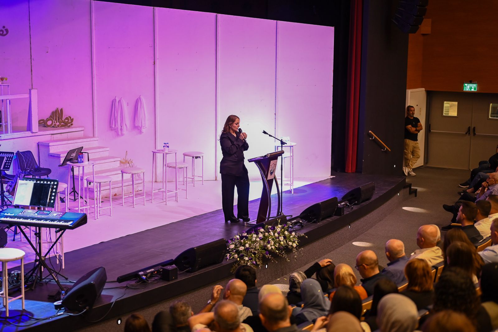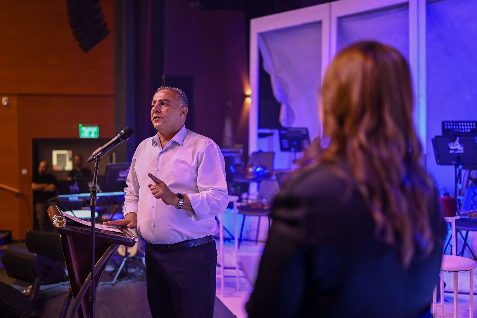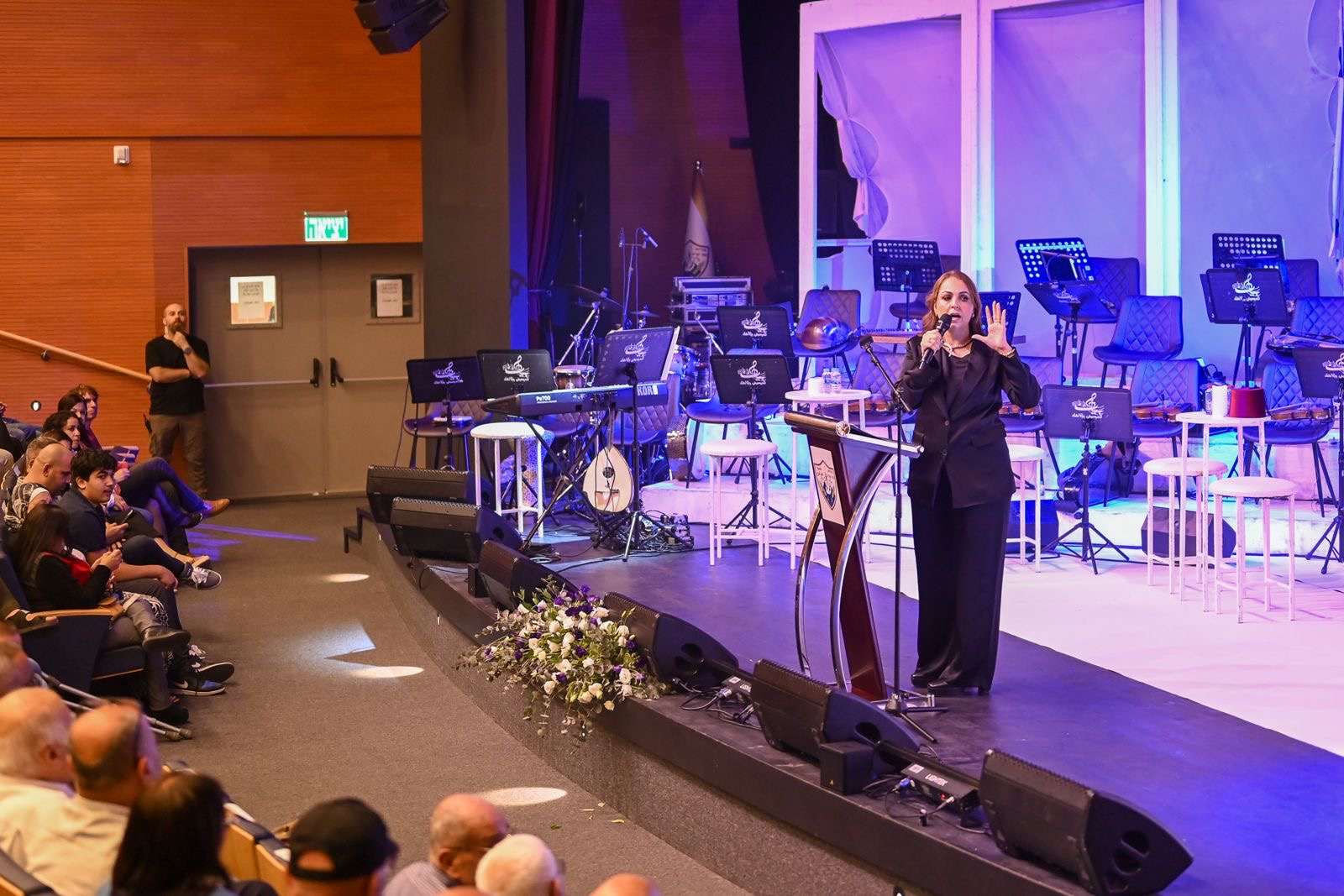 استُهلّت الأمسية بكلمة افتتاحية أدارتها ببراعة لافتة مديرة القصر الثقافي السيدة مها زحالقة مصالحة، التي أبدعت في وصف المسيرة الفنية والإنسانية للموسيقار الفذ زياد الرحباني، مُضيئةً على موروثه الموسيقي الخالد وتأثيره العابر على الأجيال والحدود وكونه نصيرا بارزا لقضايا المستضعفين والفقراء في الارض. كما وجهت تحية لجارة القمر السيدة فيروز واصفة اياها بأنها صوت من نور نزل على جبين الصباح لتضيء روح الارض.