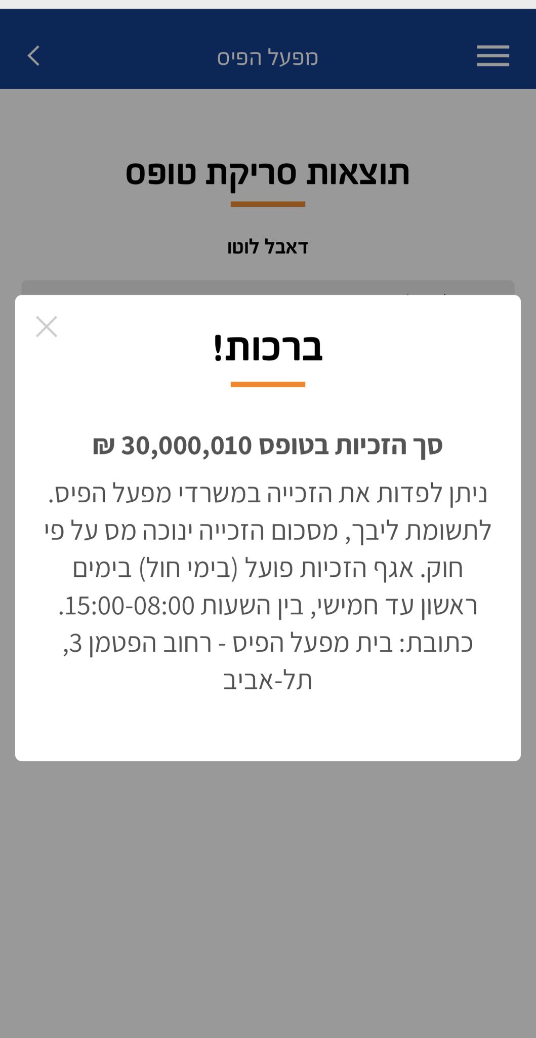 بعد يومين من السحب الذي جرى في 25.11.25، وصل إلى مقر “مفعال هبايس” أحد سكان الشمال، في الثلاثينيات من عمره، والذي فاز بالجائزة الأولى في “دابل لوتو” بمبلغ 30 مليون شيكل. الفائز، الذي أصبح مؤخرًا أبًا جديدًا، قال بانفعال إن الفوز جاء في الوقت المناسب: “الطفل هو بركة، وشعرنا أن هذا نور كبير آخر دخل بيتنا”.