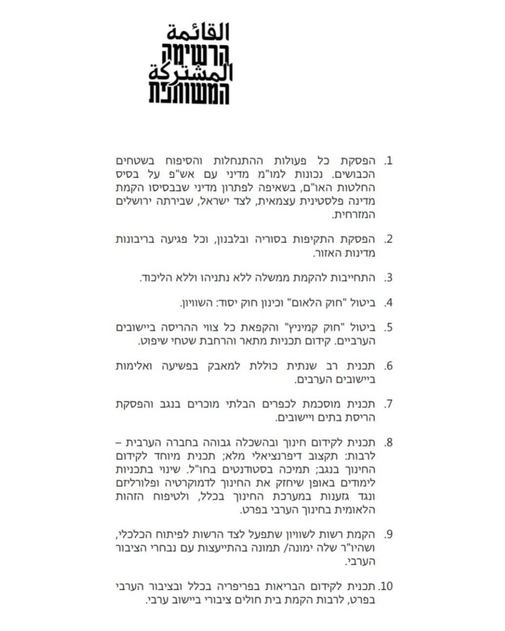 وانطلاقًا من حرصنا على تثبيت الحقيقة التاريخية، نضع أمام جماهير شعبنا الوثيقة الرسمية للمطالب التي قدمتها القائمة المشتركة آنذاك، والتي تقطع الشك باليقين حول مطالنا القومية والوطنية آنذاك: