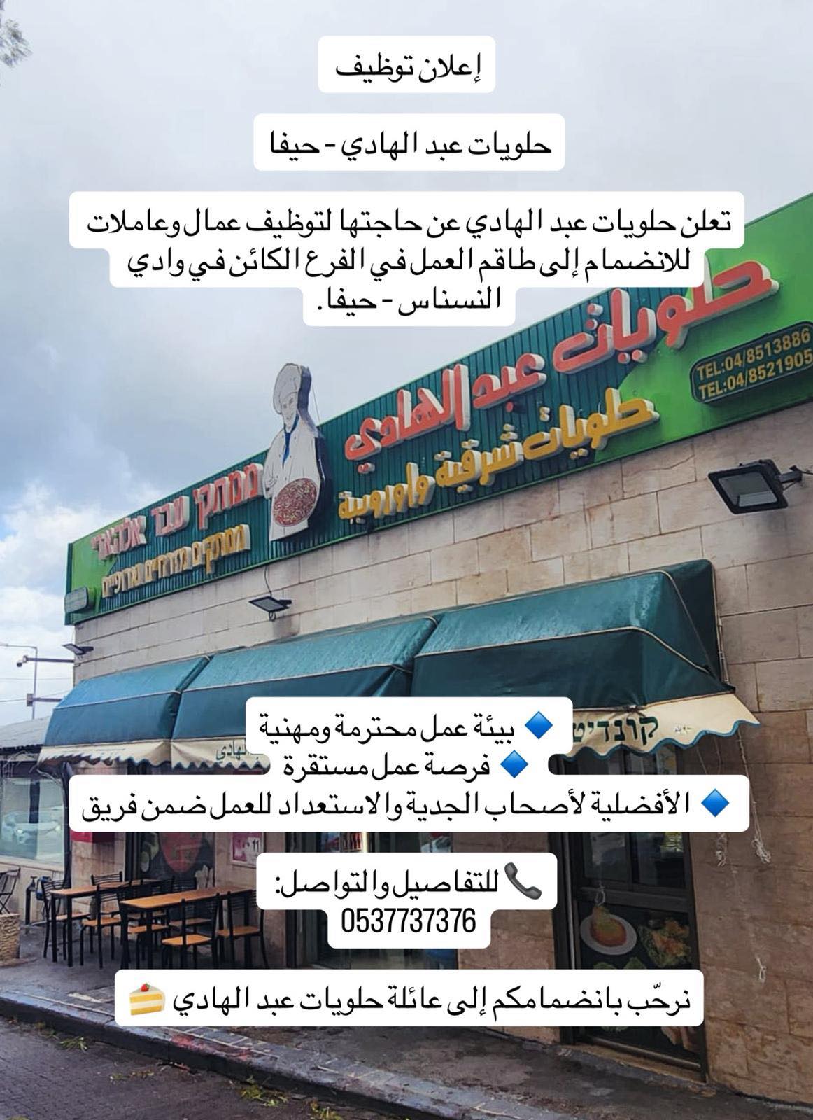 إعلان توظيف | حلويات عبد الهادي – حيفا