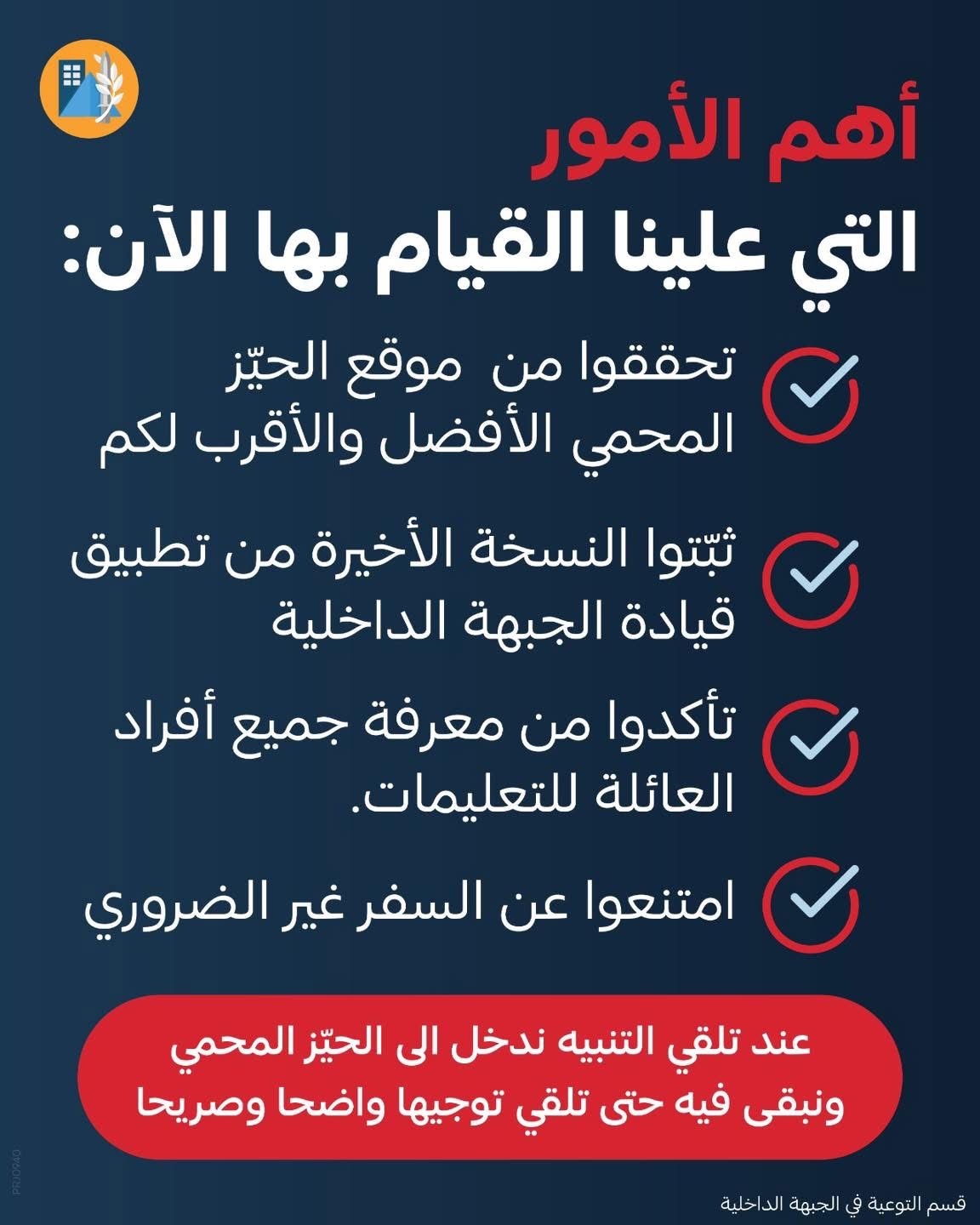 📲 تحميل أو تحديث تطبيق قيادة الجبهة الداخلية لضمان تلقي التنبيهات بشكل فوري.