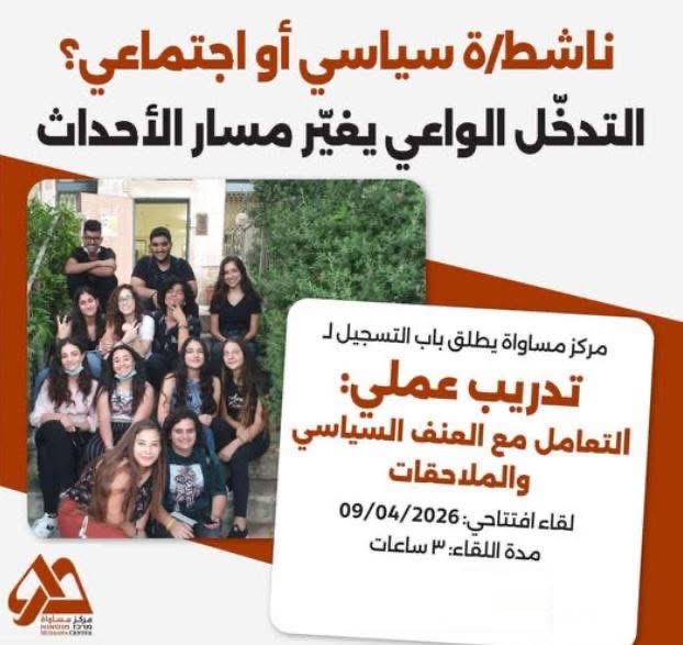 *مركز مساواة يطلق اليوم برنامجًا تدريبيًا للشباب حول التعامل مع العنف السياسي والملاحقات*