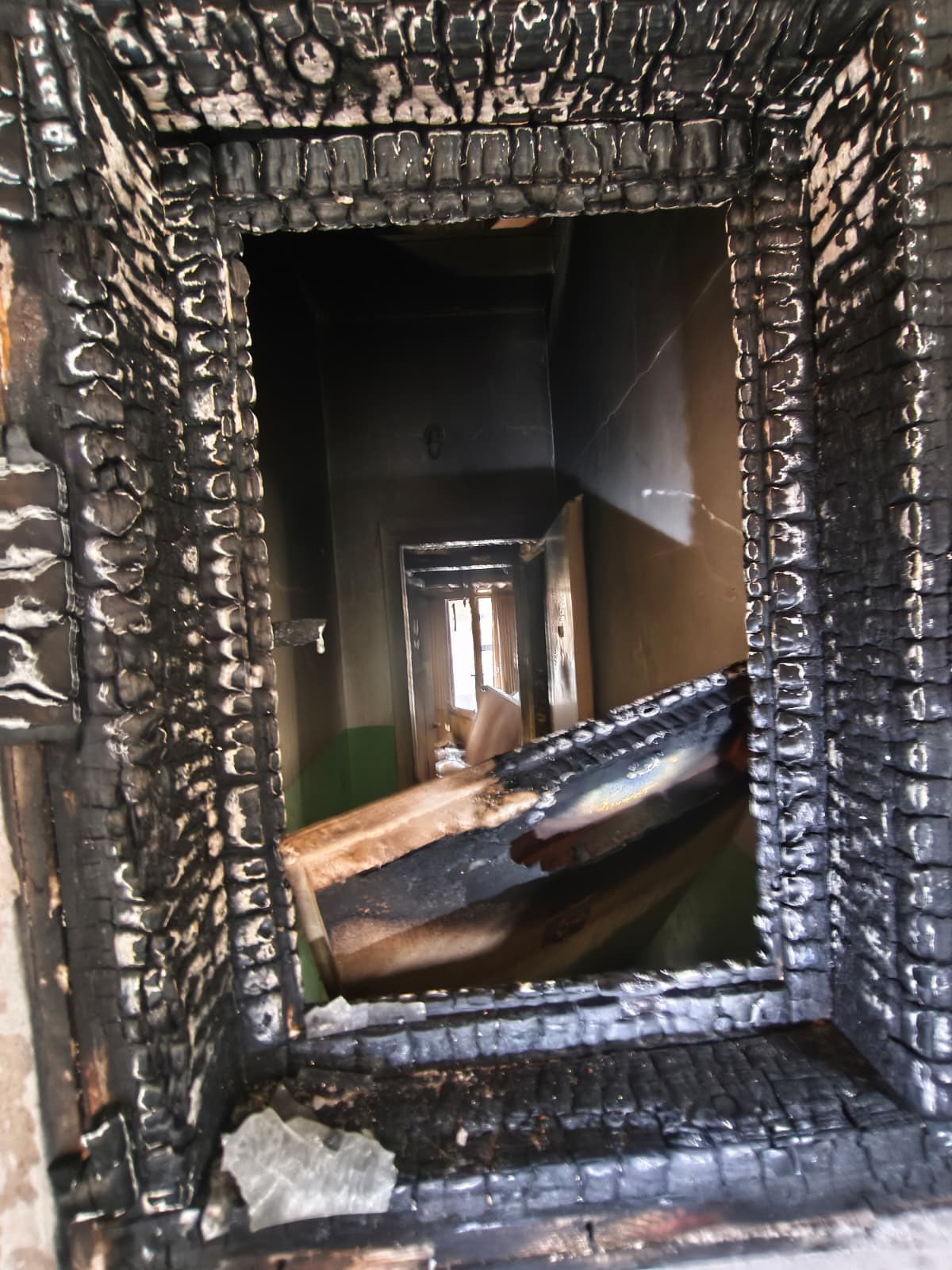 ولم تُسجل إصابات، فيما لحقت أضرار جسيمة بالمبنى.
