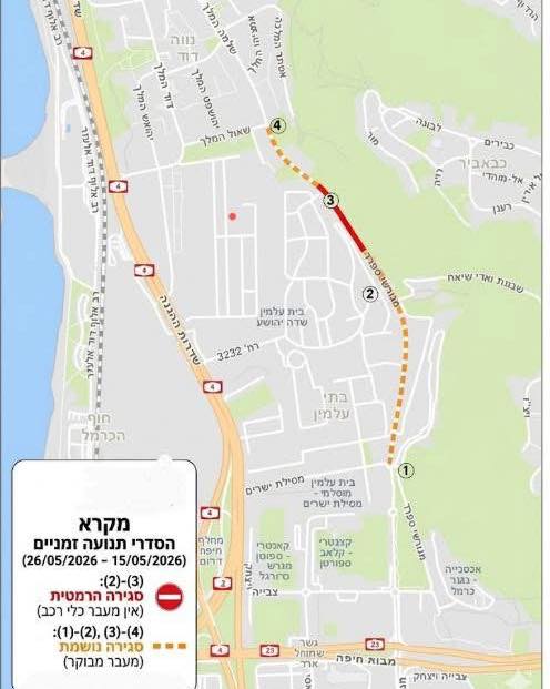أعلنت بلدية حيفا عن بدء أعمال تطوير في مقطع شارعي شلومو هميليخ – مغورشي سفاراد، ضمن مشروع ربط طريق الكبابير، ابتداءً من صباح الأحد 26.4.2026 وحتى 15.5.2026.