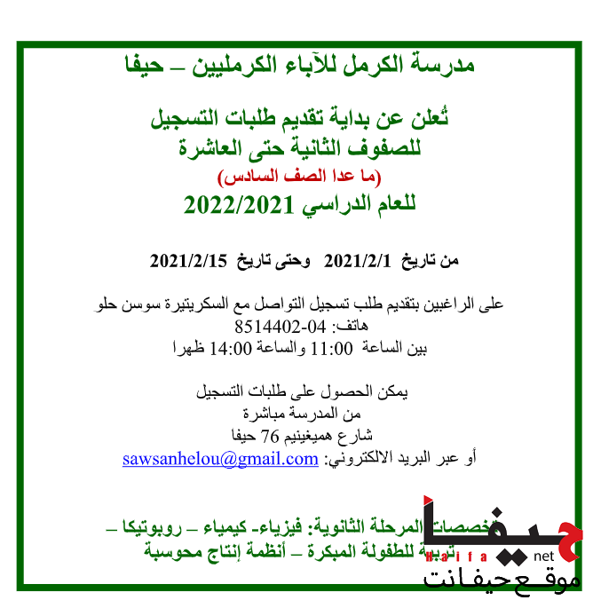 على الراغبين بتقديم طلب تسجيل التواصل مع السكريتيرة سوسن حلو