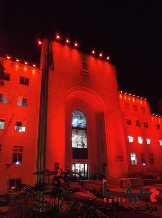 إضاءة مبنى بلديّة حيفا باللون الاحمر هذا المساء حدادا على وفاة ابنائها الشباب- محمود قلق، راجي حجازي وماهر حمّاد في حادث طرق مأساوي.