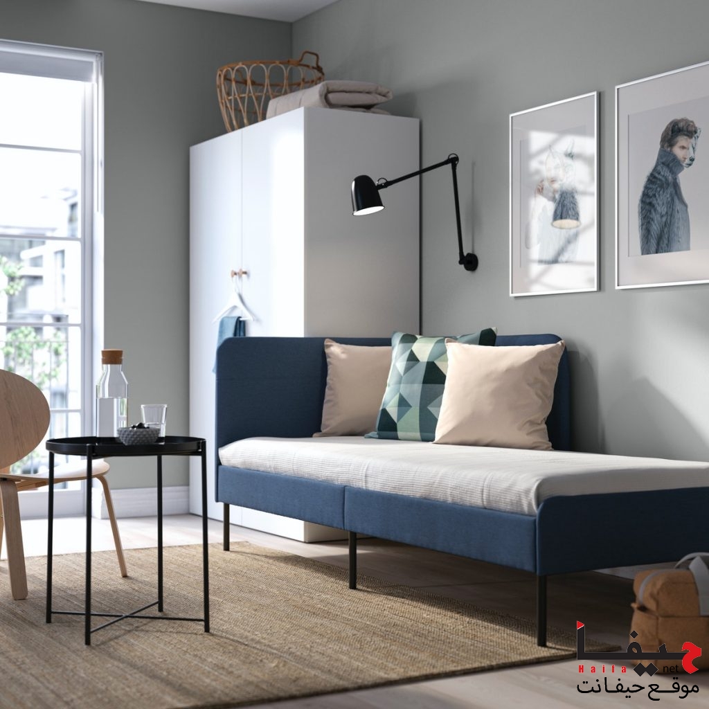 هيكل السرير المنجّد من مجموعة BLÅKULLEN قد يكون حلًا ممتازًا لعدم توفّر مساحة متاحة في أرجاء البيت. يمكنكم بسهولة تحويل الهيكل لسرير مفرد ومن سرير مريح في الليل إلى زاوية جلوس مريحة خلال النهار!