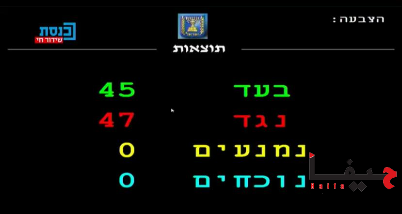 وقد سقط القانون بفارق صوتين فقط حيث صوّت مع القانون 45 نائبًا بينما عارضه 47 نائبًا، والجدير ذكره أنّ النوّاب العرب في الحكومة صوّتوا جميعهم ضد اقتراح القانون.