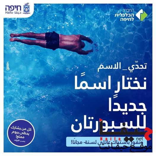 ◼بلديّة حيفا والشركة الاقتصاديّة بمبادرة- “تحدّي الاسم” بهدف اختيار اسم جديد للمسبح البلديّ العامّ.