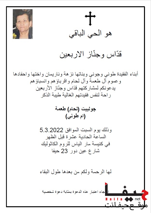 حيفا نت > أخبار حيفاوية > قداس وجناز الأربعين جولييت لحام طعمةقداس وجناز الأربعين جولييت لحام طعمةمراسل حيفا نت | 26/02/2022اترك تعليقاً إلغاء الردلن يتم نشر عنوان بريدك الإلكتروني. الحقول الإلزامية مشار إليها بـ *التعليق * Δ