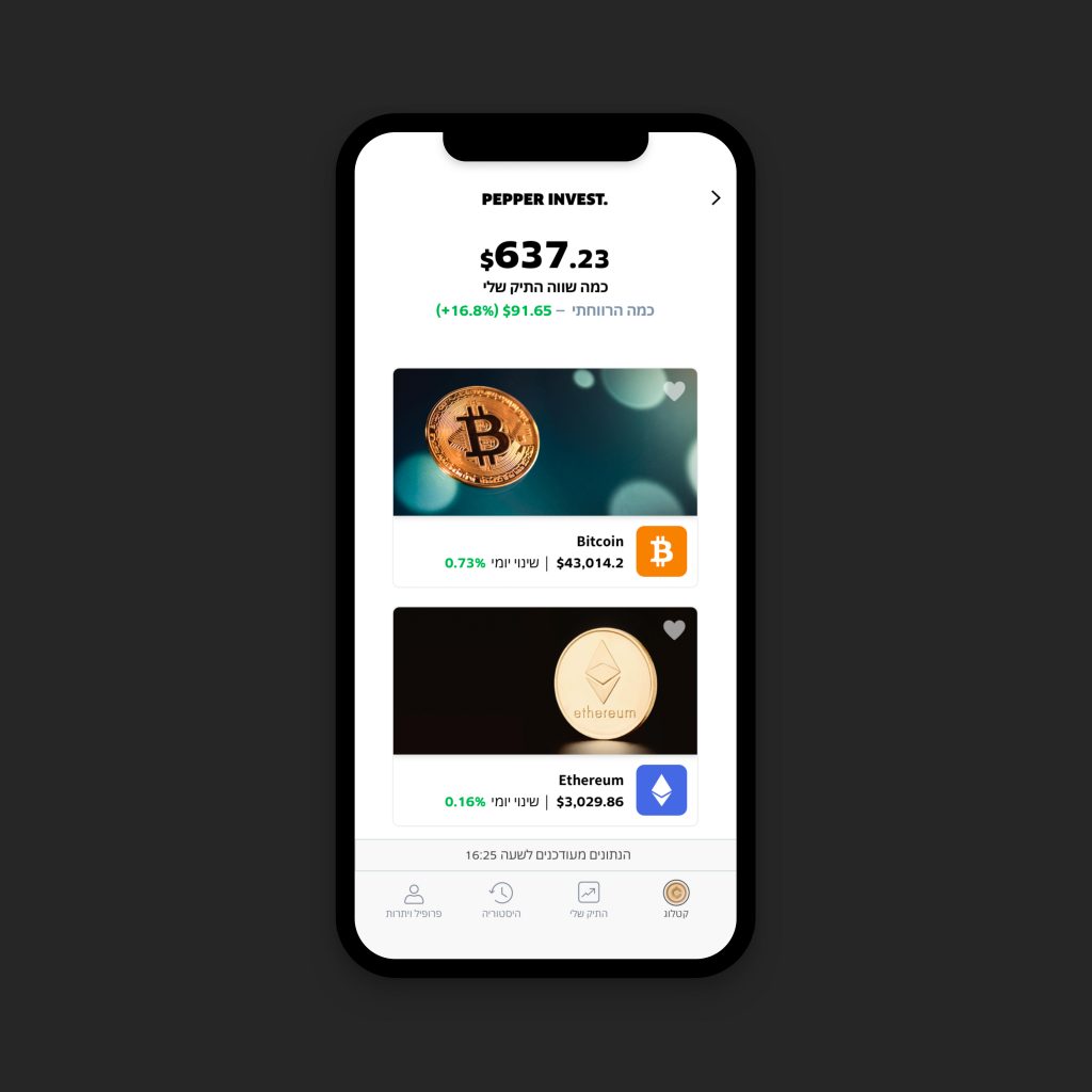فقد أعلنت Pepper Invest، منصة الاستثمار الرقمي من Pepper من مجموعة لئومي، مؤخرًا، عن إطلاق خدمة مبتكرة وفريدة من نوعها في النظام المصرفي في إسرائيل، وهي التداول بالعملات المشفّرة.
