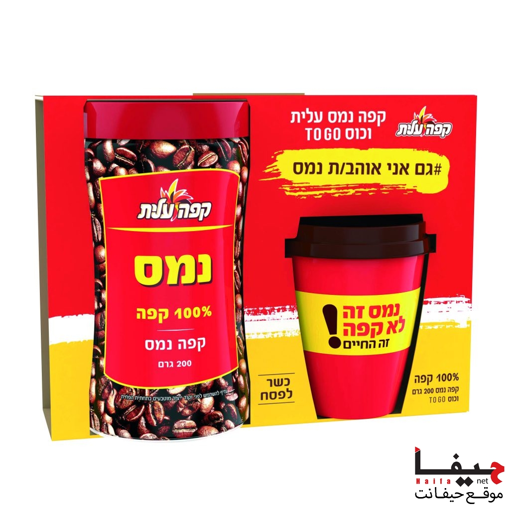 الرزمة تحتوي على 200 غرام من قهوة “نميس عليت” + كوب  TO GOهدية.