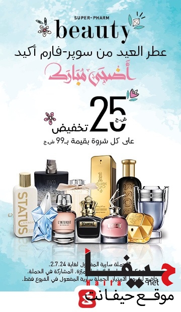 أطلقت شبكة سوبر-فارم حملة جديدة بمناسبة عيد الاضحى المبارك، حيث تمنح تخفيضاً بقيمة 25 ش.ج على كل شروة بقيمة 99 ش.ج على العطور المشاركة في الحملة. يذكر أن الحملة سارية في الفروع فقط، وتستمر حتى تاريخ 02.07.2024.