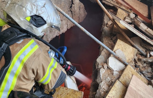 اصابة مباشرة لمبنى واشتعال للنيران